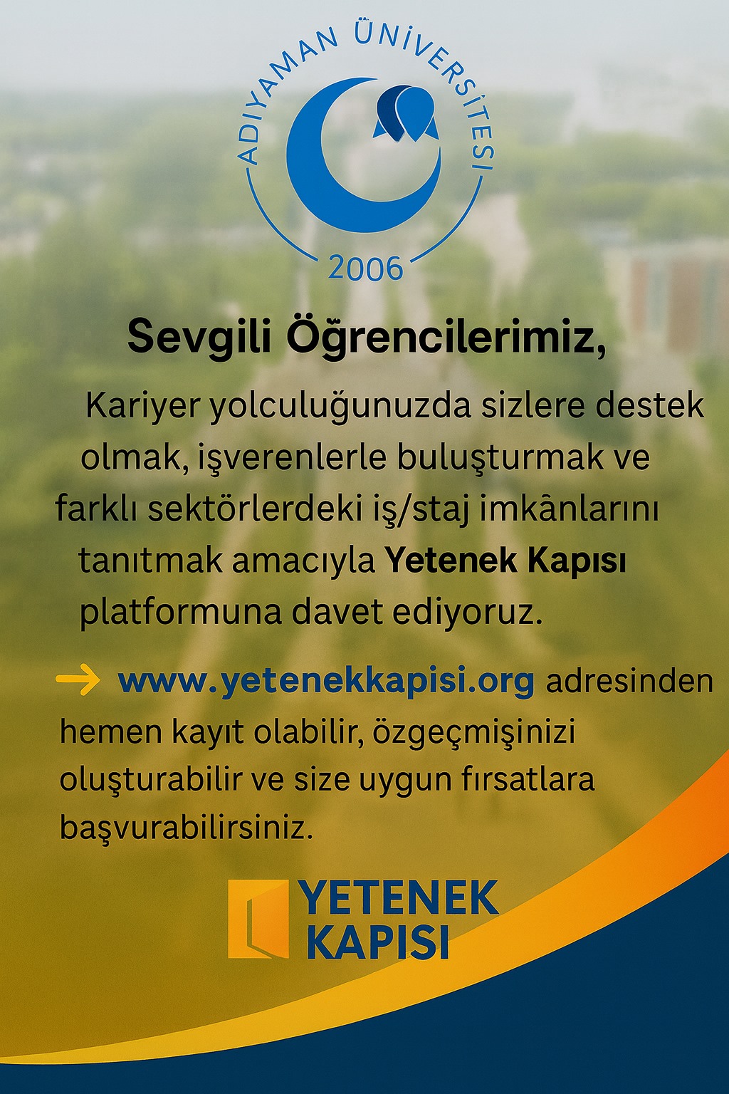 Kariyer yolculuğunuzda sizlere destek olmak, işverenlerle buluşturmak ve farklı sektörlerdeki iş/staj imkanlarını tanıtmak amacıyla Yetenek Kapısı platformuna bekliyoruz.